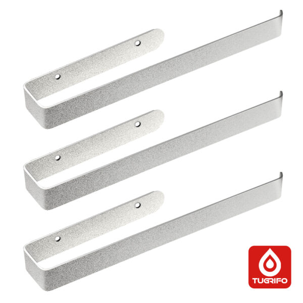 Nuestros Toalleros 28 cm de Aluminio 3 uni. acabado Plata Mate modelo U adhesivo o con tornillos para baño o cocina. Diseñado para adaptarse a cualquier decoración de baño, este toallero en elegante acabado antihuellas aportará una estética moderna y útil. Podrá hacer una instalación sin complicaciones en tan sólo unos minutos. Fabricado con aluminio de alta calidad, es la solución ideal para mantener sus toallas organizadas y al alcance, sin comprometer la integridad de tus paredes y azulejos ya que con al ser de aluminio y pesar poco podrá colocarlo con un adhesivo, no incluido, sin realizar agujeros o por el contrario también podrá colocarlo con unos pequeños tornillos que trae el producto.